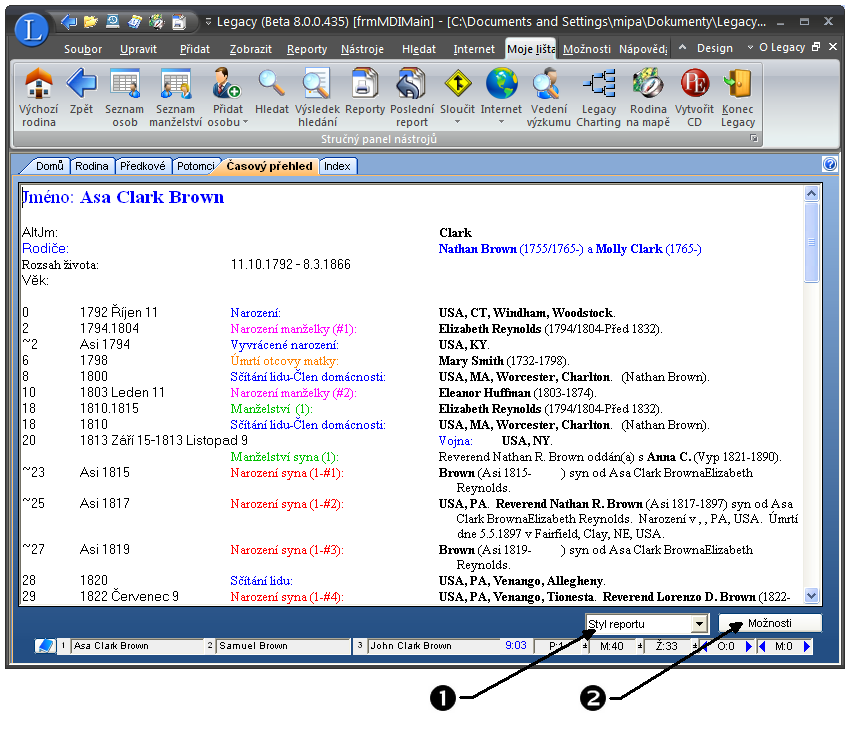 Tlačítko Možnosti vám umožní nastavit počet osob a generací ve schématu.