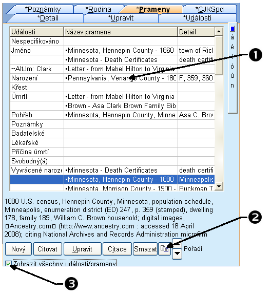 Odstraněním zátržky budou v seznamu zobrazeny pouze události, které mají citaci pramene.