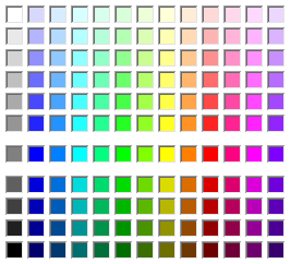 Pro rychlý výběr barvy je možno využít předdefinovanou sadu 143 vzorků barev. Kliknete-li na malé políčka barvy, vyplní se touto barvou větší rámeček pod těmito vzorky. Zobrazenou barvu můžete zvolit kliknutím na tlačítko Vybrat tuto barvu vpravo. Vybrat barvu můžete také pomocí dvojkliku na vzorek barvy.