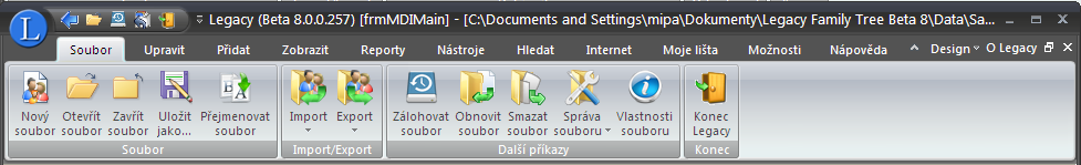Pás karet v Legacy je navrhnut tak, aby vám pomohl co nejrychleji najít příkazy, které potřebujete pro provedení svých činností. Příkazy jsou organizovány v logických skupinách, které jsou seskupeny pod jednotlivými kartami. Každá záložka odpovídá určitému typu činnosti.