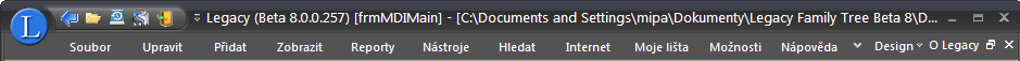 Pomocí kliknutí na záhlaví karty (Soubor, Upravit, Přidat, Zobrazit, Reporty, Nástroje, Hledat, Internet, Moje karta, Možnosti nebo Nápověda) zobrazíte galerii všech příkazů pod touto kartou. Chcete-li nějaký příkaz zvolit, klikněte na něj. Např. kliknutím na Nápověda se Pás karet změní na: