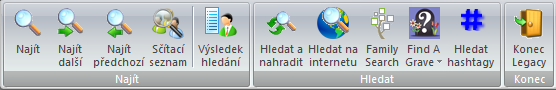 Následuje popis všech skupin a nástrojů na kartě Hledat na Pásu karet: